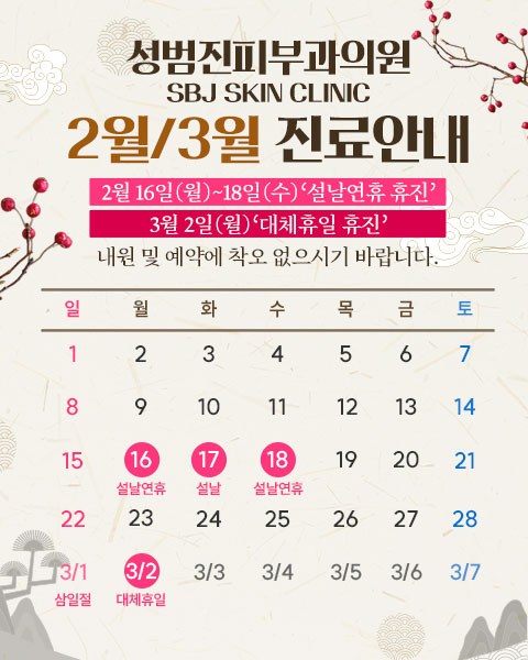 ※ 미용치료 및 여드름 치료는 접수할 때 미리 말씀해주시면 치료와 예약이 편리합니다.